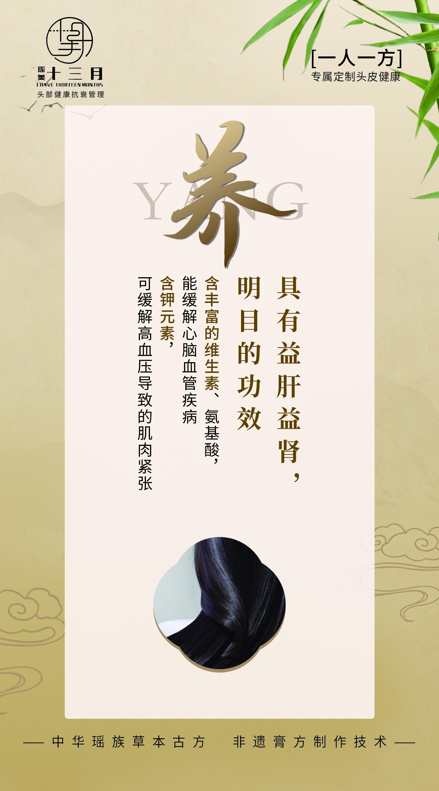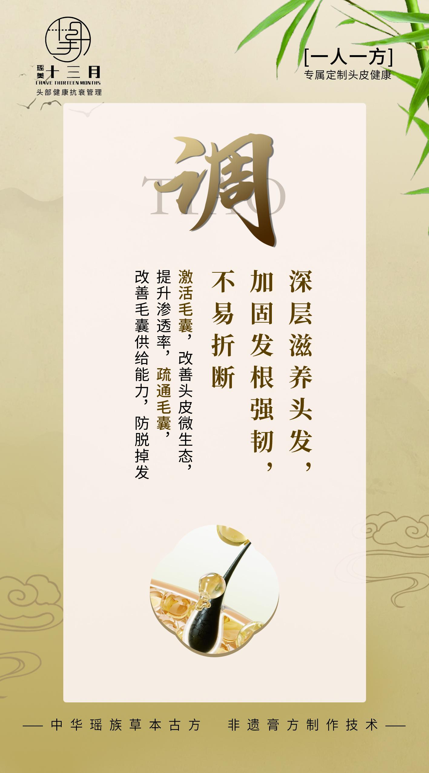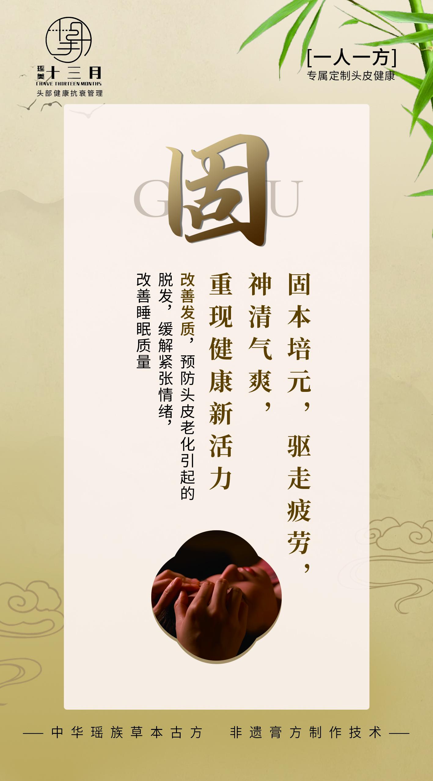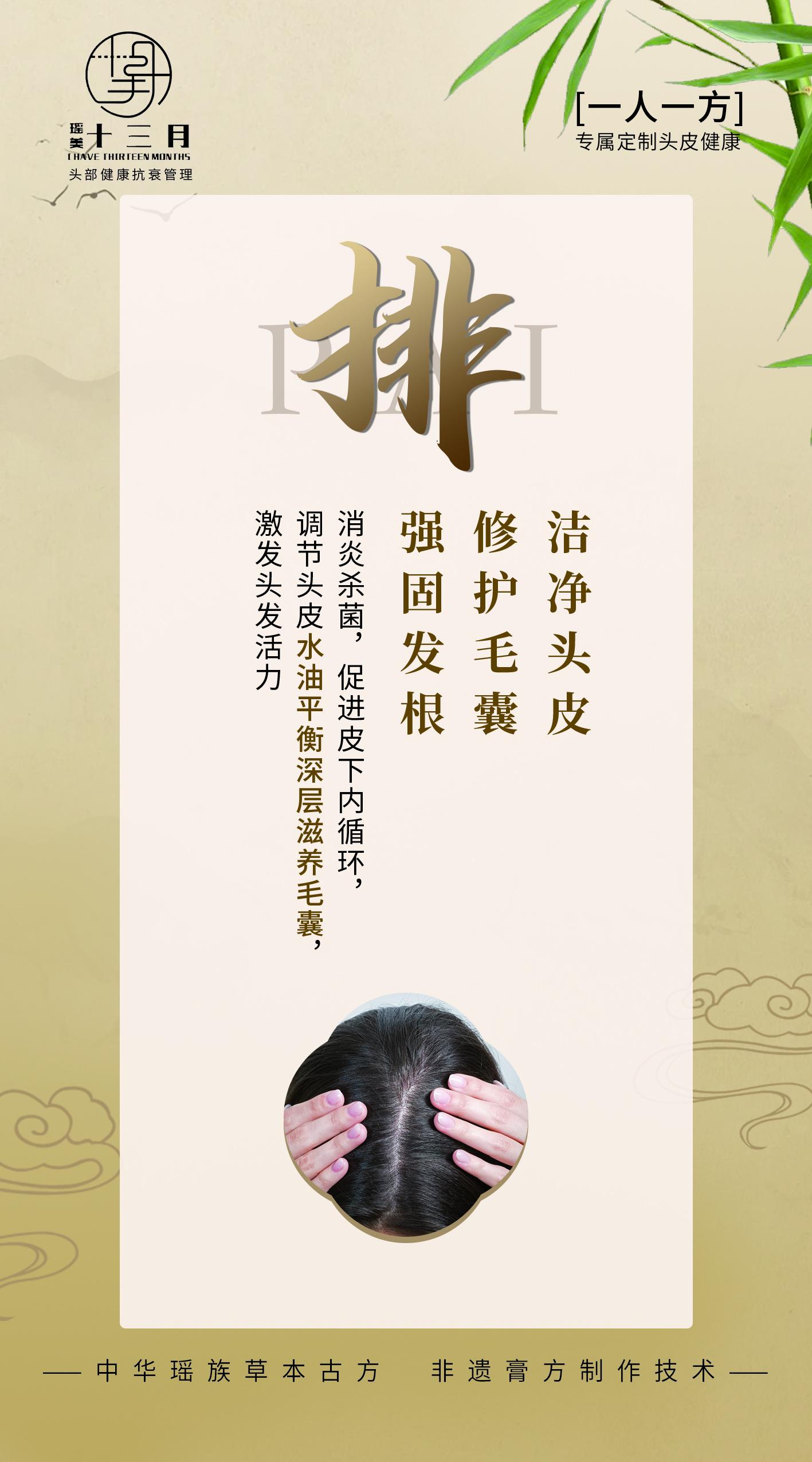 【瑶美·十三月】头皮养护品牌是一个以少数民族瑶族的草本古方为【本】,继以膏方制作非遗技术为【源】,并以“一人一方,专属定制”为特色疗法,将头部健康归于古法疗愈,围绕着:视觉、听觉、嗅觉、味觉、触觉、灵觉为一体,打造头部健康疗愈空间。并拥有自主研发团队与技术的头部养疗品牌,精选珍稀原料,遵循传统秘方工艺和现代先进提取技术,为用户提供针对性问题头皮解决方案,打造防脱育发健康疗愈空间,传递全新的健康生活理念。