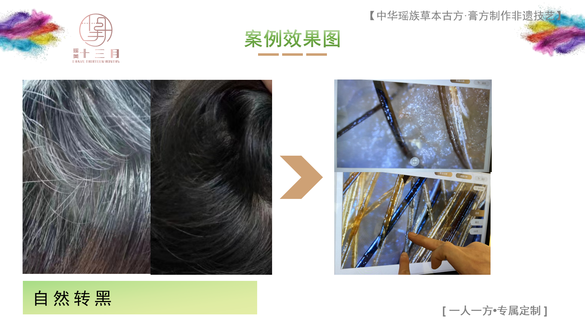 头皮环境明显改善,炎症消除、修复毛鳞片、远离护发素、 头发恢复弹性、白发生长被抑制、开始生长黑发、