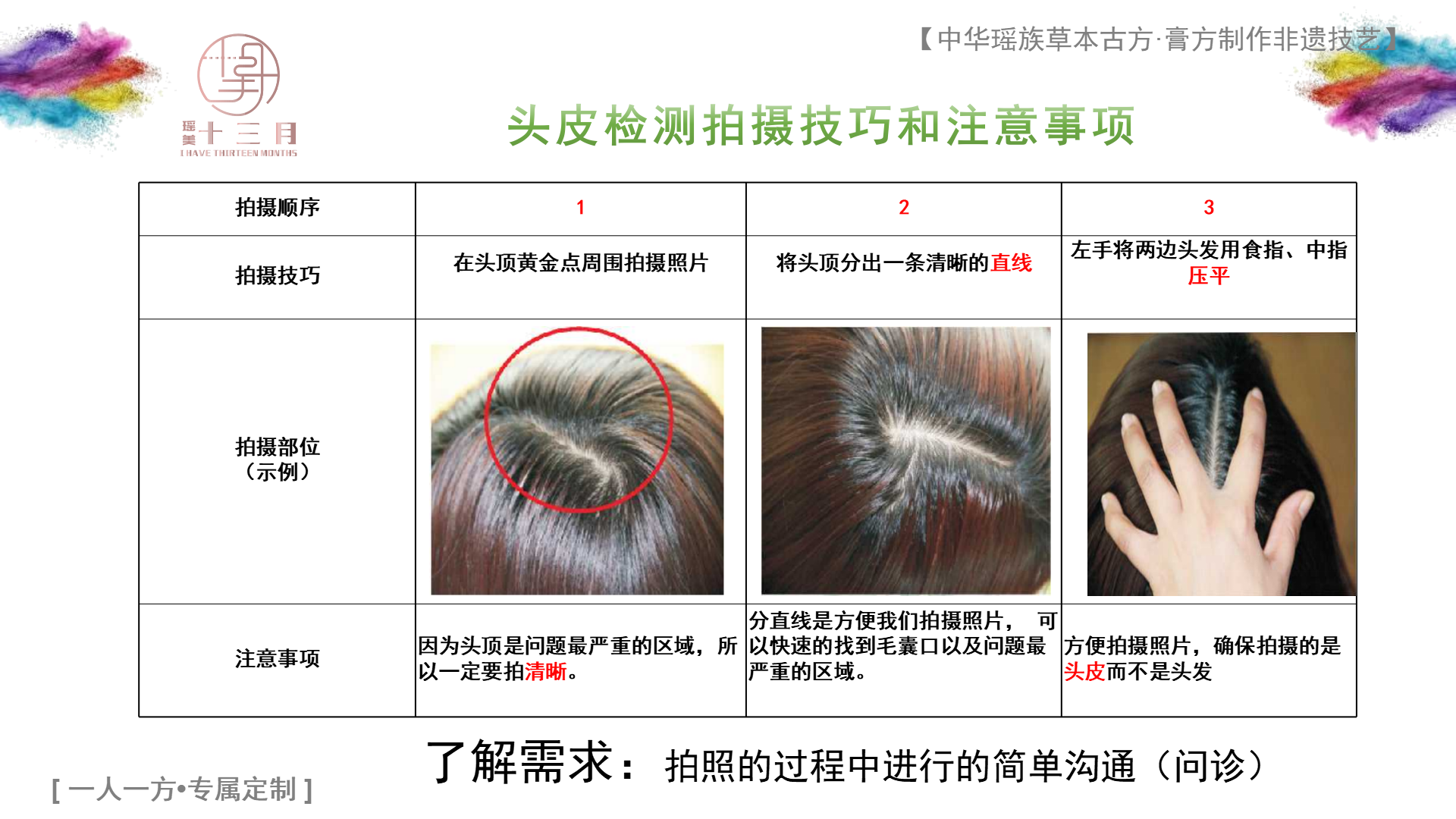 我们做的是头部健康管理:运用中医 中药原理,打通头部微循环,内调气 血而养外,从而达到养发、养颜、养 健康的目的 3 [一人一方专属定制]